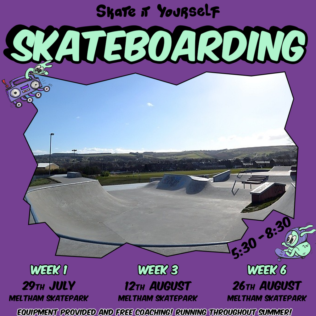 All equipment provided if you’re a beginner or come along and learn new skills with your own equipment too! There’ll be some art involved and the hosts from Skate it Yourself and mental health wellbeing trained too!